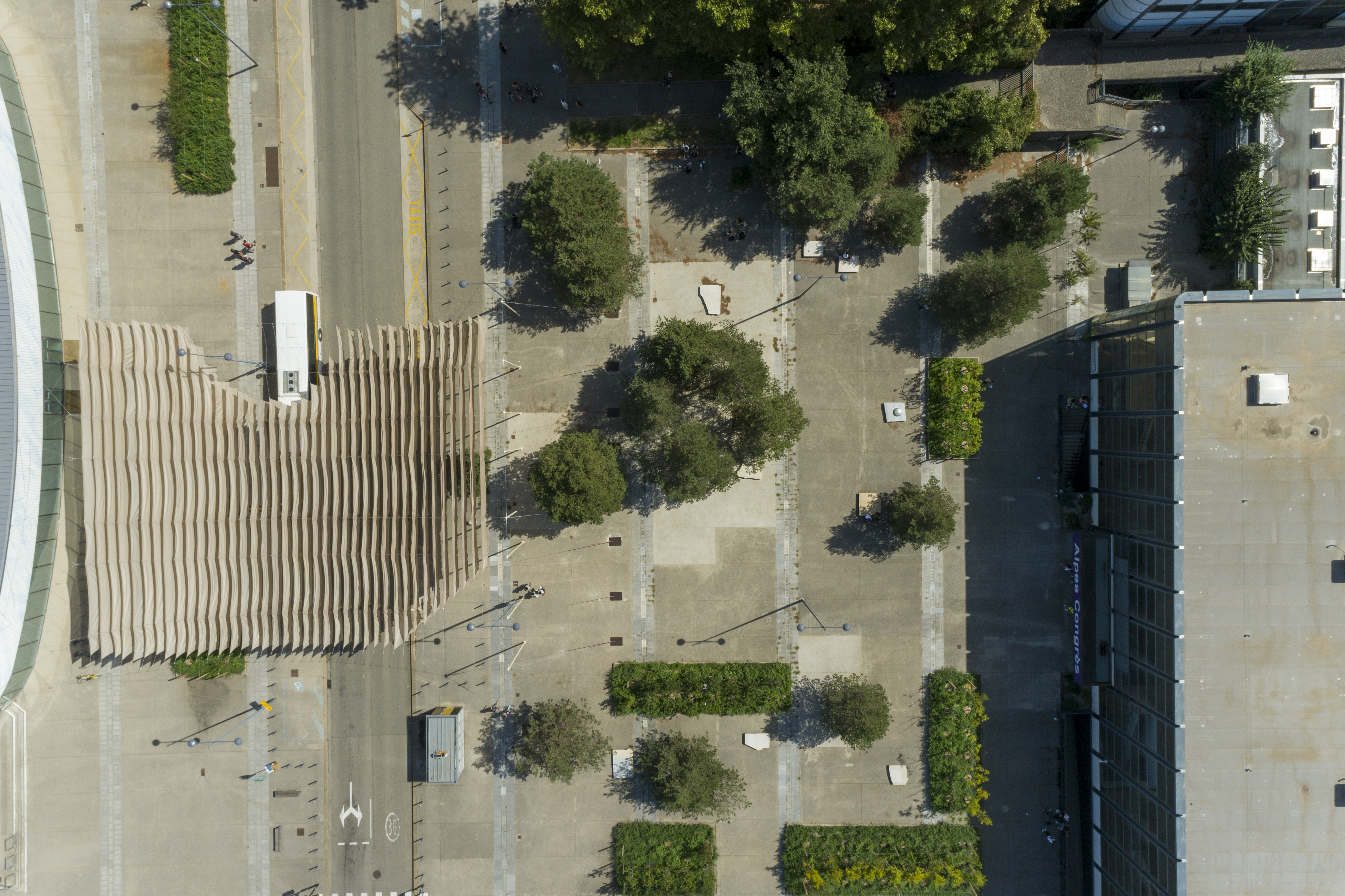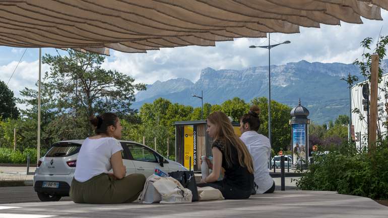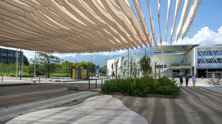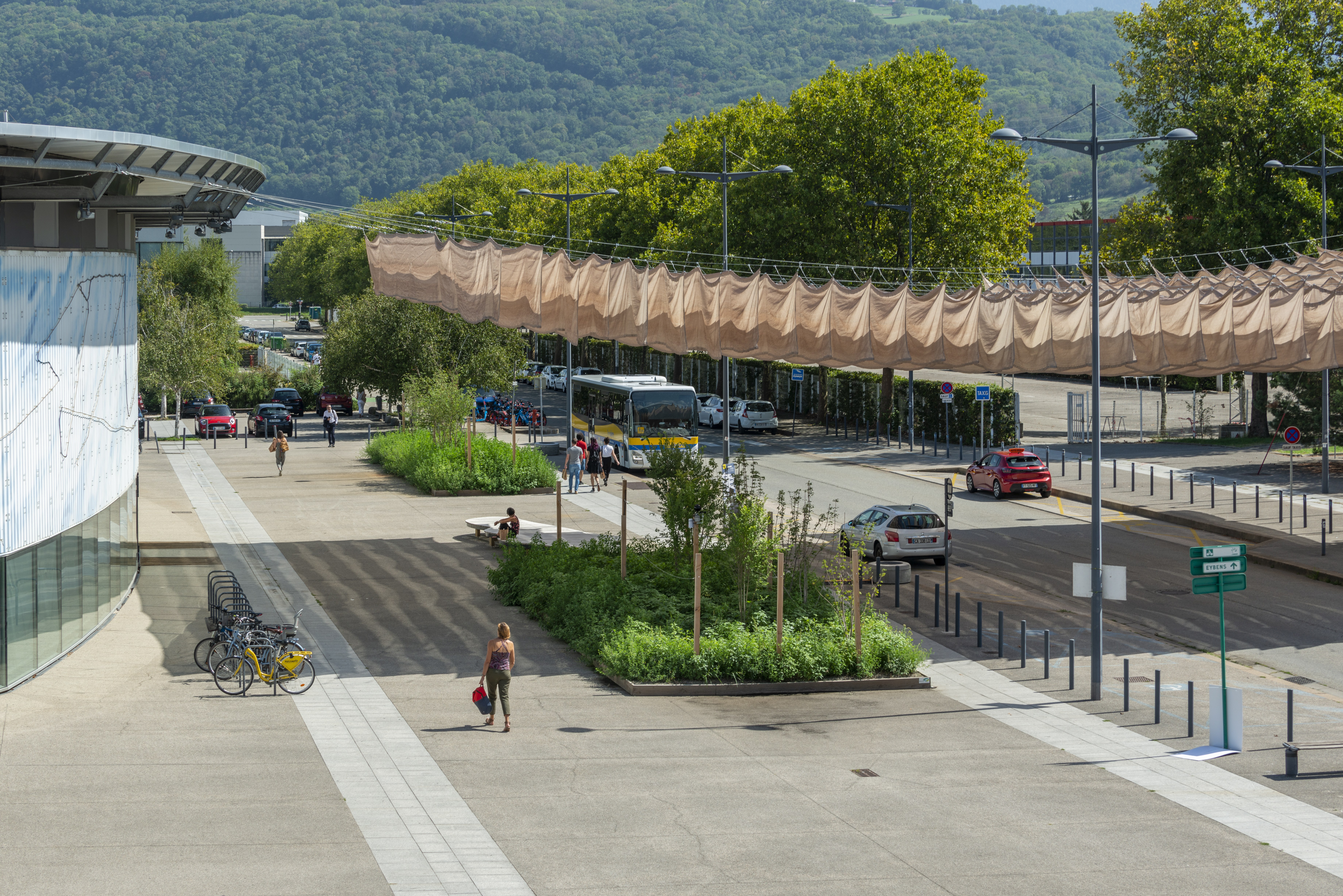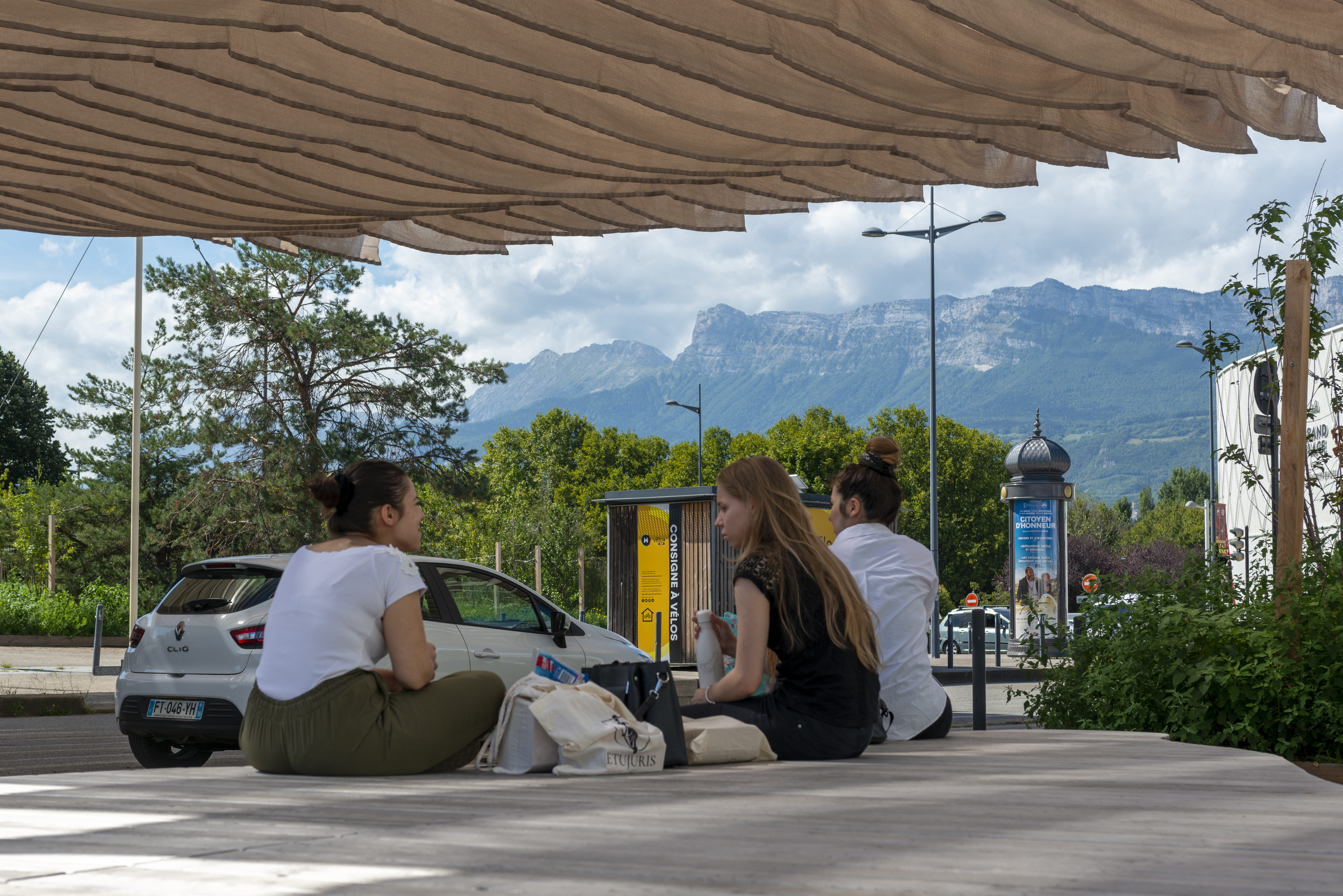 - Un parvis a la merci du soleil :Situé à la rencontre du site Alpexpo - Alpes Congrès – Summum, du centre commercial Grand'Place et de la Patinoire Pôle Sud, le « parvis » est un espace très minéral marqué par d'importantes chaleurs estivales.