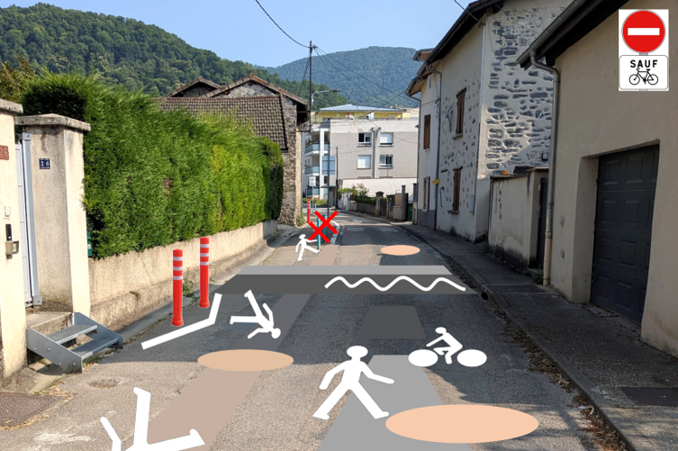 - Prolongement de la vélorue des rues Treilles/Petit Jean/Routoirs sur la rue Pasteur depuis la rue de la Gare jusqu’à la rue de l’Isère.