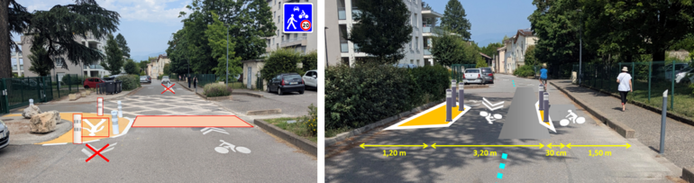 Dans l’attente de ce réaménagement, et afin de permettre la circulation à double-sens des cycles, y compris des usagers les plus vulnérables, sans pénaliser les piétons, le statut de zone de rencontre va être renforcé entre l’allée Marceaux et la rue Pierre Giraud. Pour cela, plusieurs actions sont prévues :